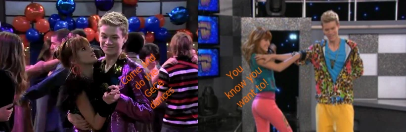 In a picture of Auction It Up behind the scenes, there is a picture of Kenton and Bella with their arms around each other, and are staring at each other. Since they are wearing Gunther's and CeCe's clothes, this is considered an official GeCe romantic embrace.